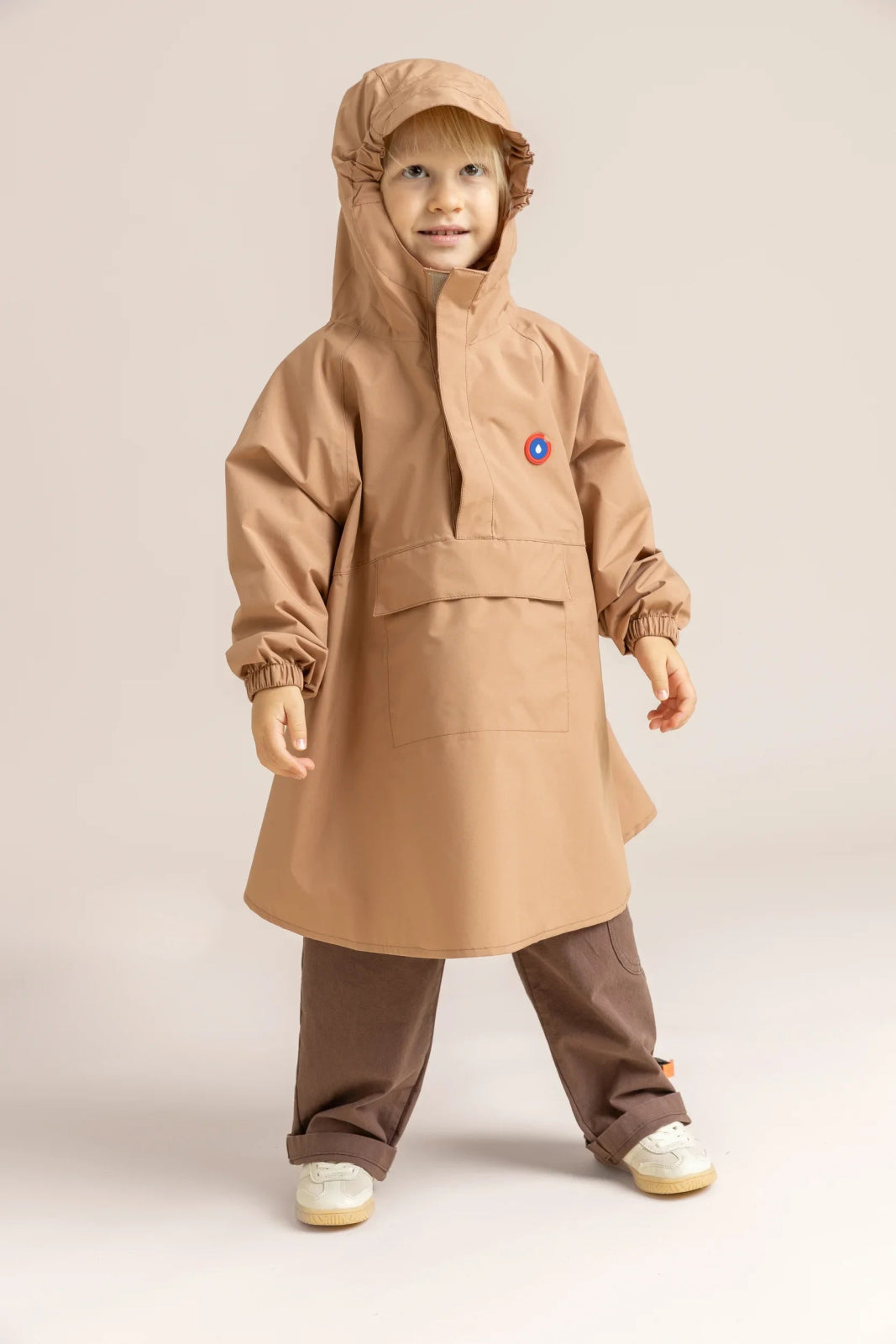 Elle s'enfile et se ferme à l'aide d'un scratch au devant. Avec la capuche ils seront doublement protégé de la pluie. Convient à tous les enfants.