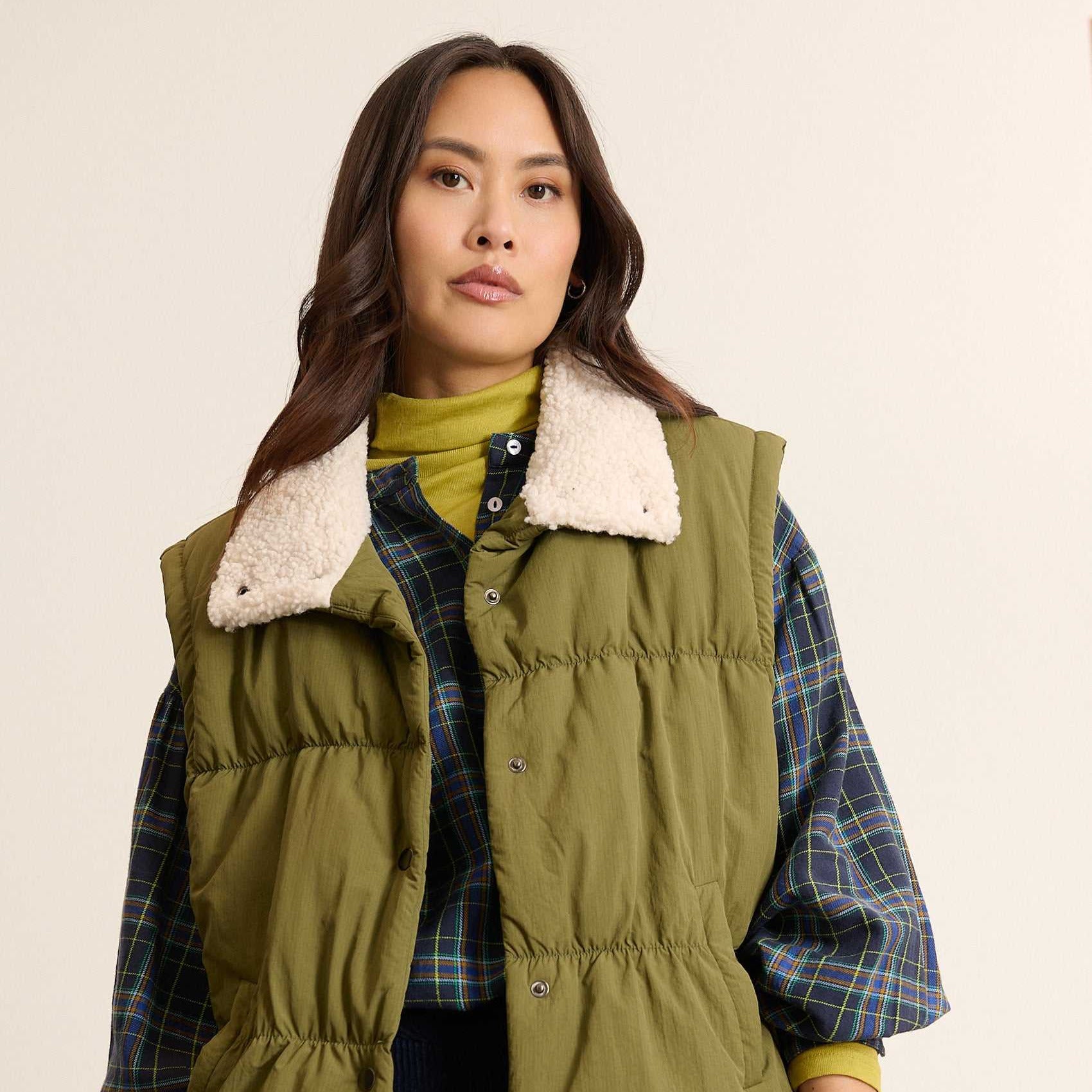 BROOKLYN est une doudoune sans manches qui mêle style urbain et praticité. Son col intérieur en bouclette blanche apporte une touche de contraste et de douceur. Une pièce moderne, pensée pour allier chaleur, confort et allure au quotidien.