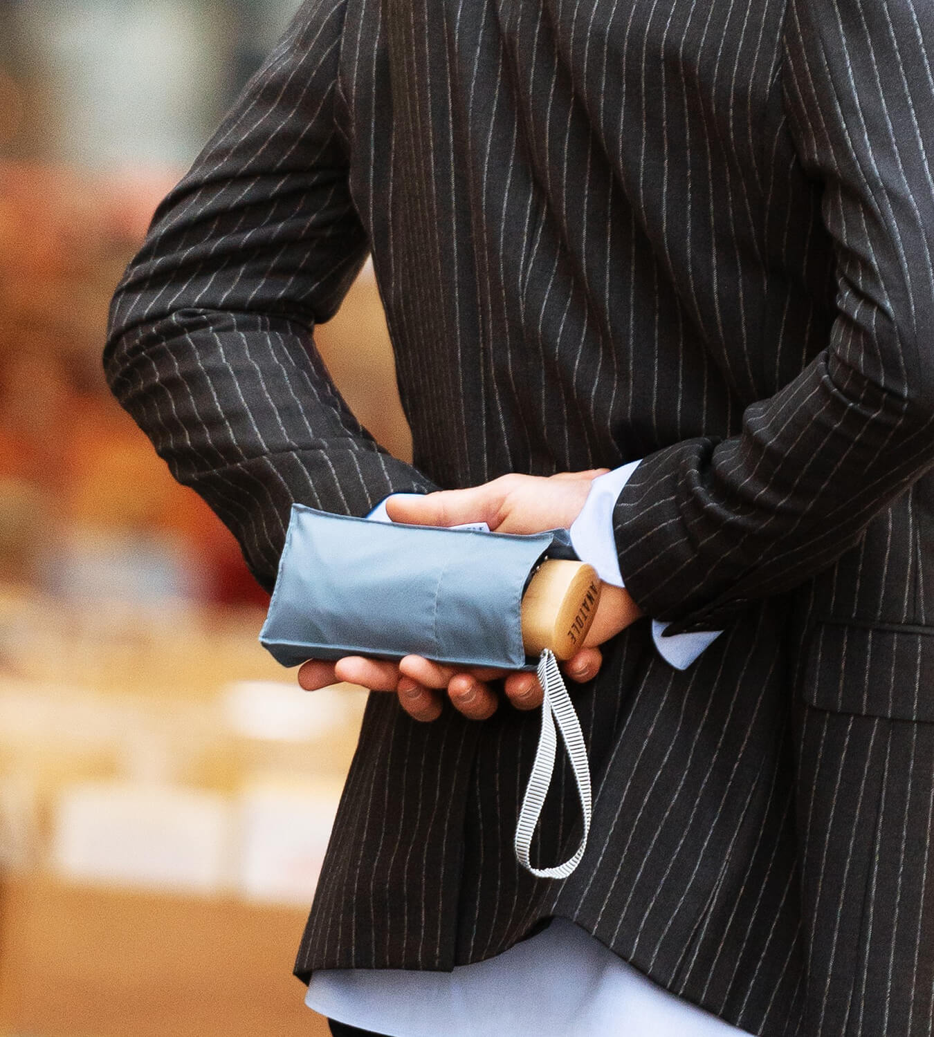 Le teinte bleu-gris du mini-parapluie Victor complète merveilleusement tout type de tenues : vous ferez un sans-faute en le portant avec des vêtements et accessoires caramel et kaki. Ou, pour un look plus frais, on l’aime accompagné d’un joli lilas et d’un rose fuchsia.