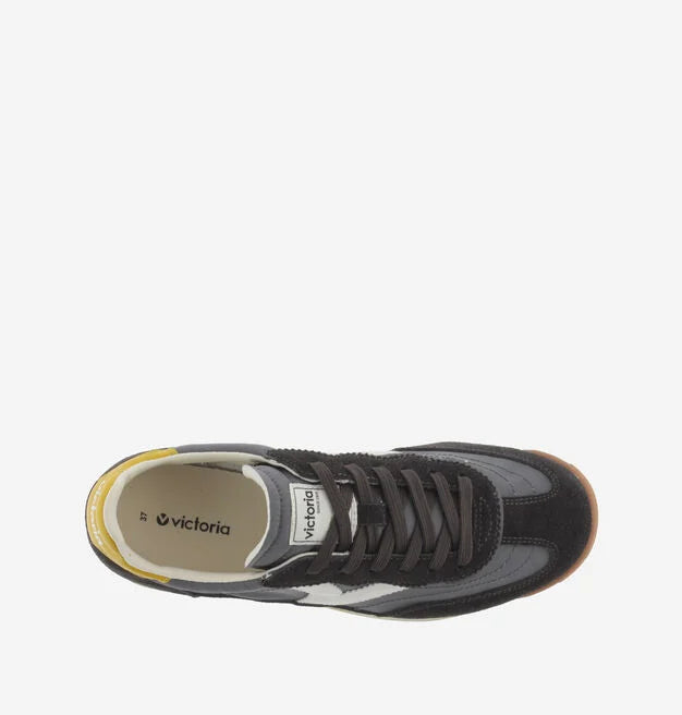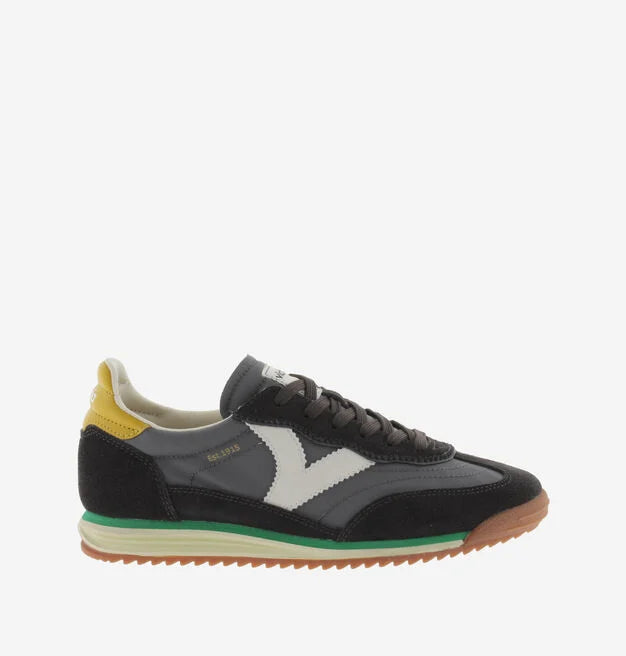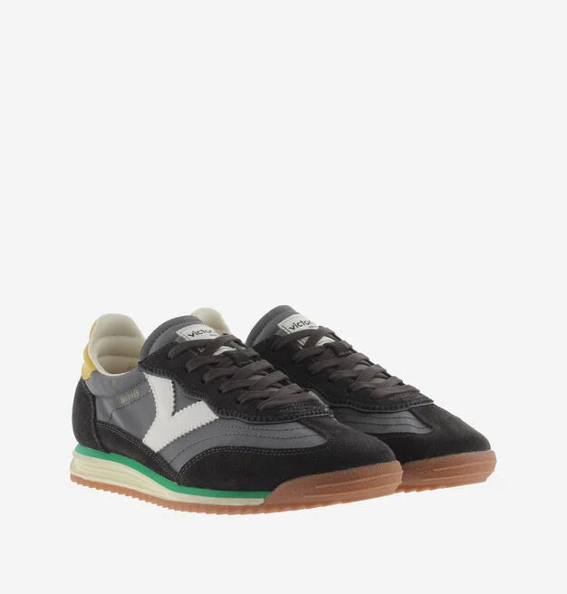 Sneakers pour femme confectionnées en nylon avec des pièces en croûte de cuir ton sur ton et synthétiques. V latérale et pièce arrière avec le logo de la marque en couleurs effet peau en contraste. Fermeture par lacets ronds marbrés ton sur ton. Semelle bicolore et bande crantée caramel qui favorise une meilleure adhérence.